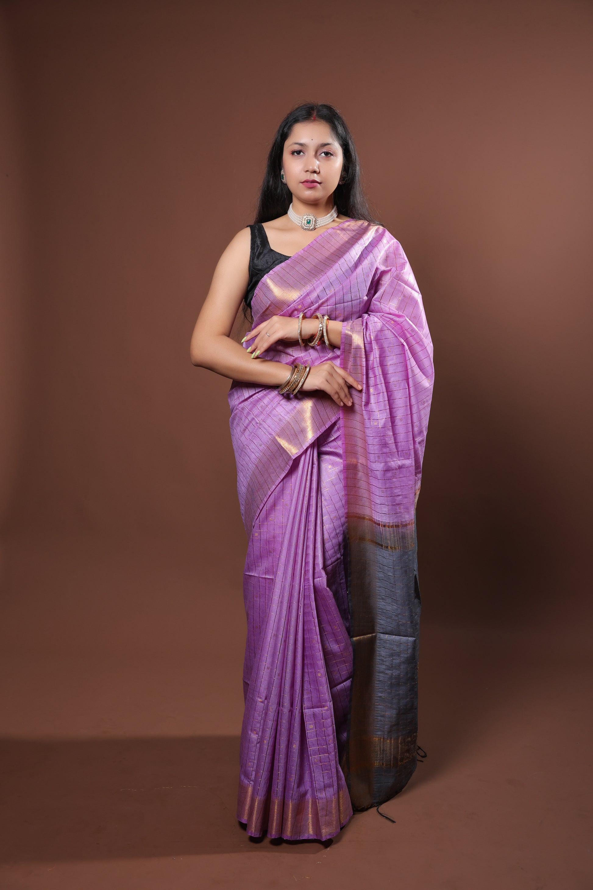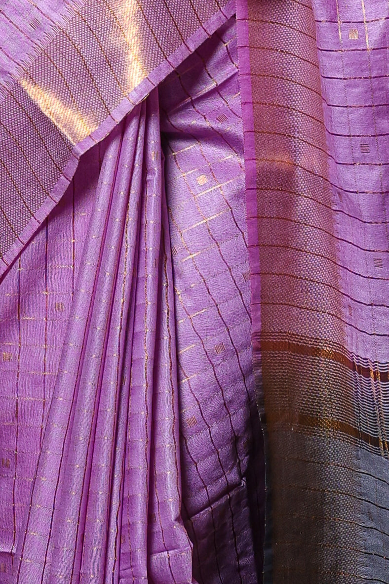 Purple and grey Stripped Saree with zari border